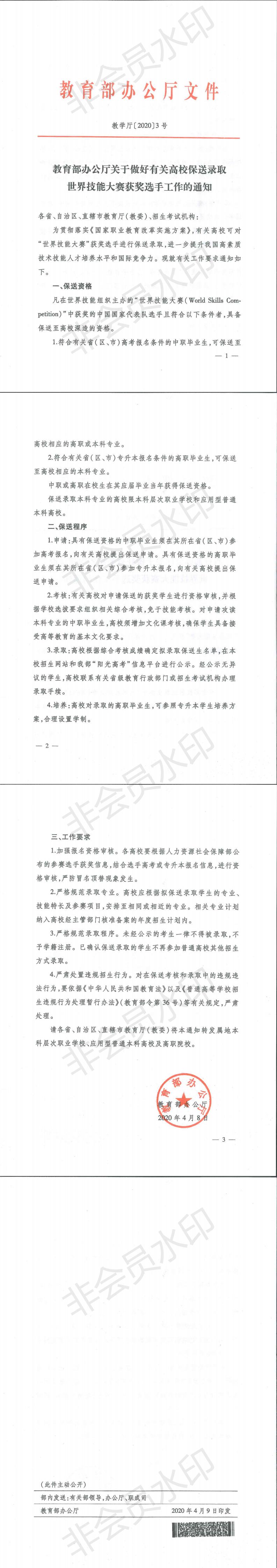 教育部办公厅关于做好有关高校保送录取世界技能大赛获奖选手工作的通知