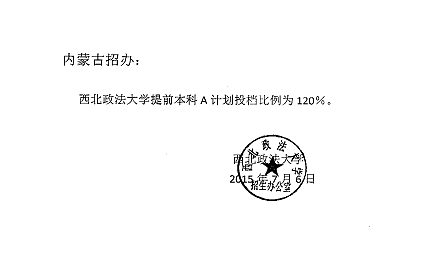 西北大学关于在内蒙古提前批次A计划投档比例的通知