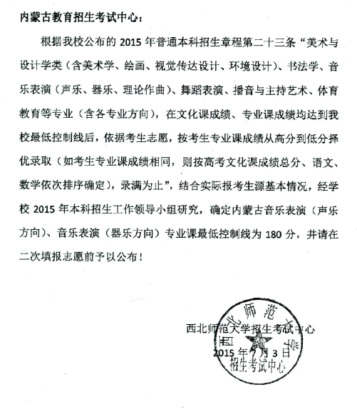 西北师范大学关于2015年普通高考本科招生章程的说明