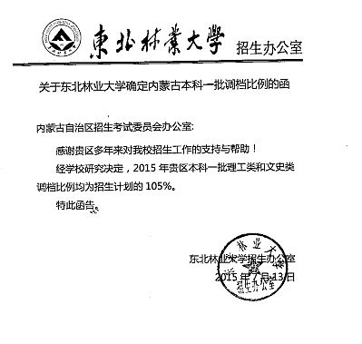 东北林业大学关于调整投档比例的通知