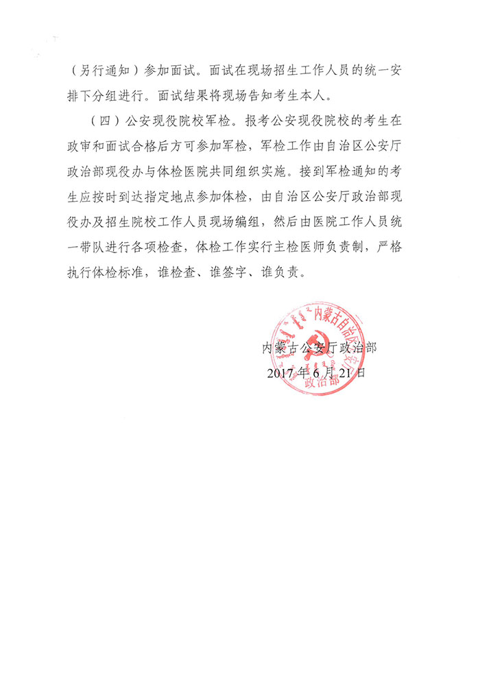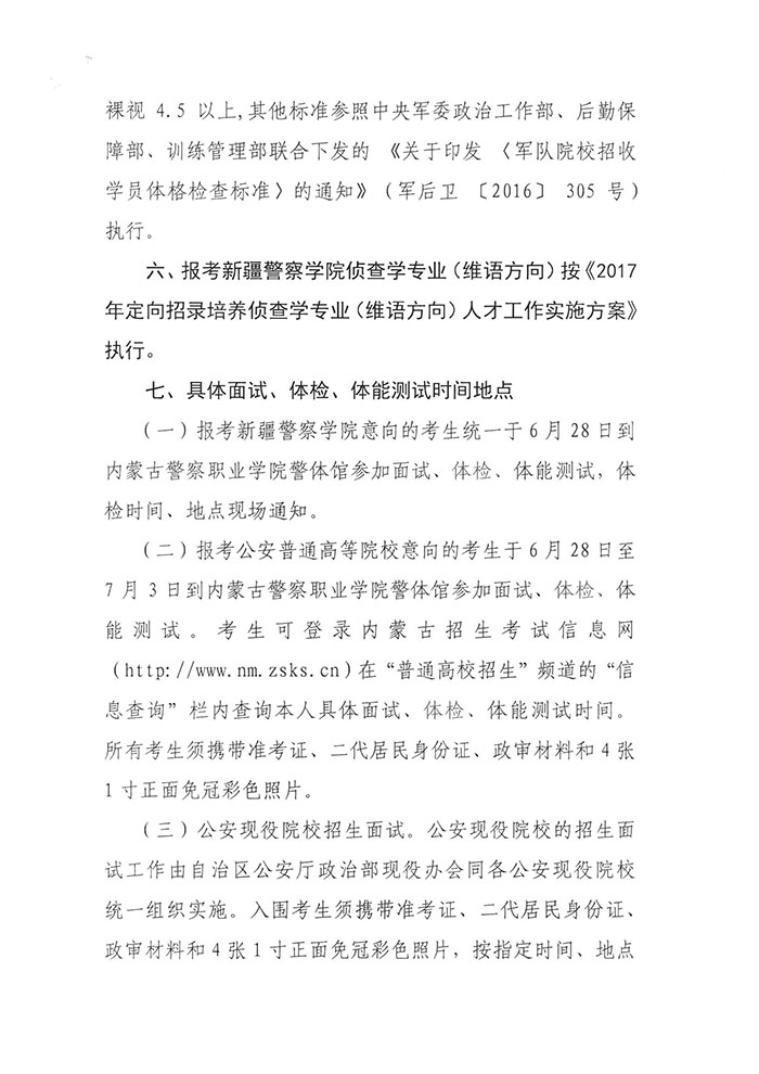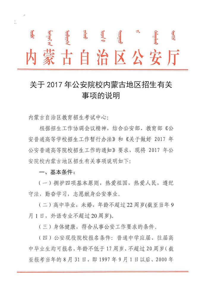 关于2017年考生填报公安院校内蒙古地区招生有关事项的说明