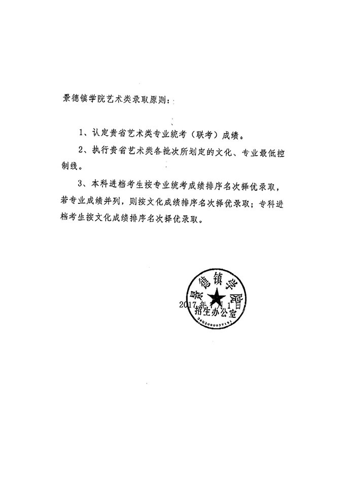 景德镇学院艺术类录取原则