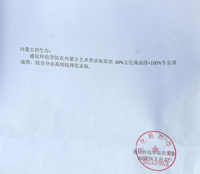 通化师范学院艺术类录取原则