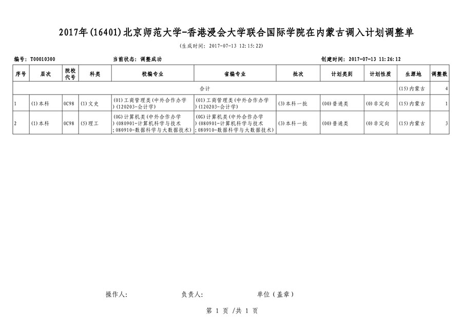 北京师范大学-香港浸会大学联合国际学院增加计划的函
