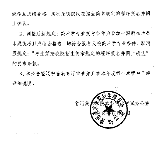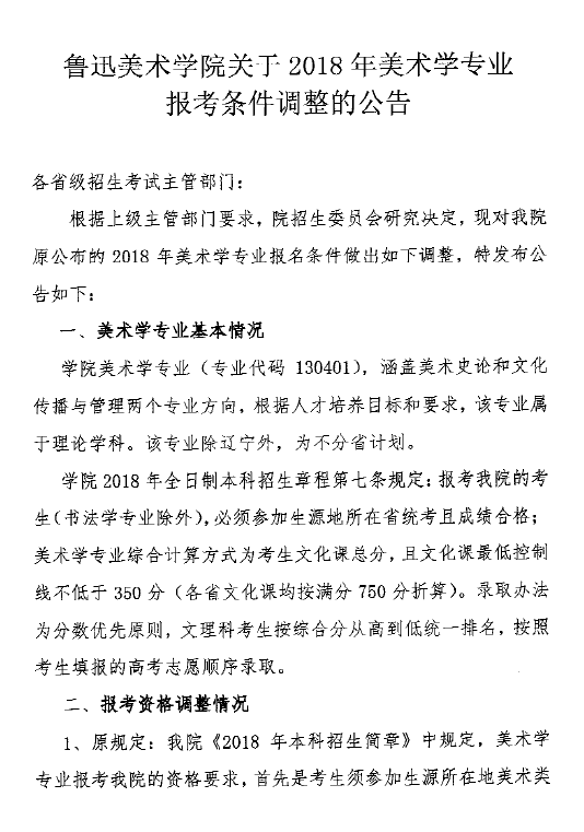 鲁讯美术学院关于2018年美术学专业报考条件调整的公告