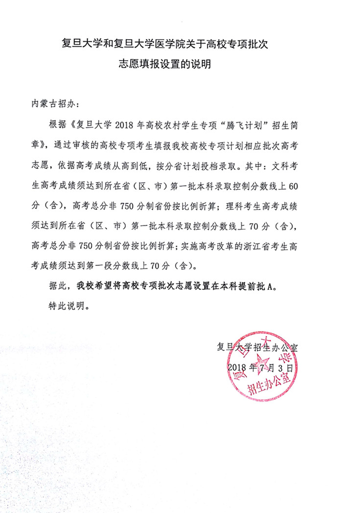 复旦大学和复旦大学医学院关于高校专项计划的说明