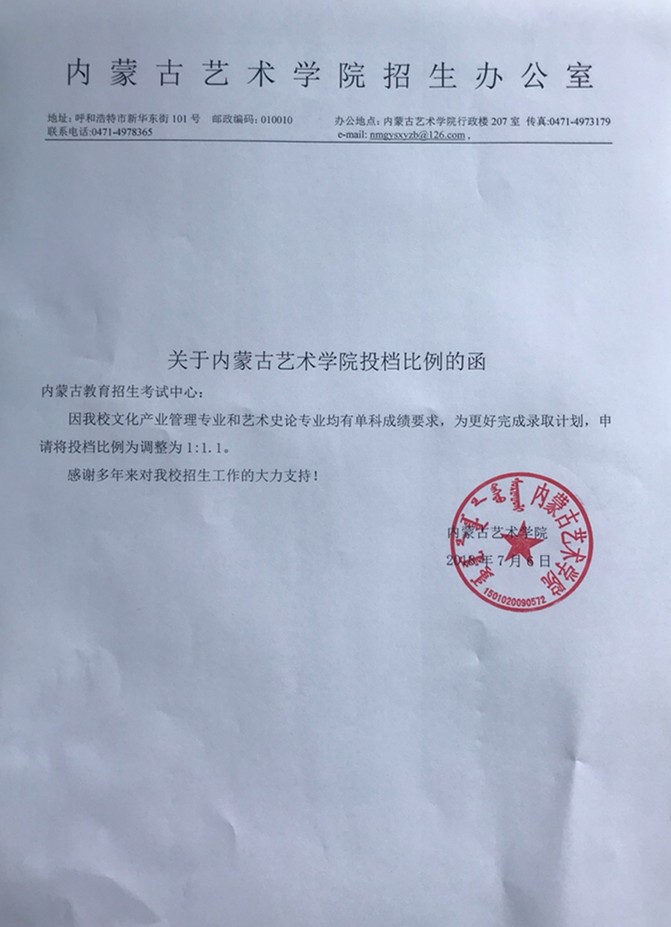 本科提前A批K91内蒙古艺术学院普通文科调整投档比例的说明