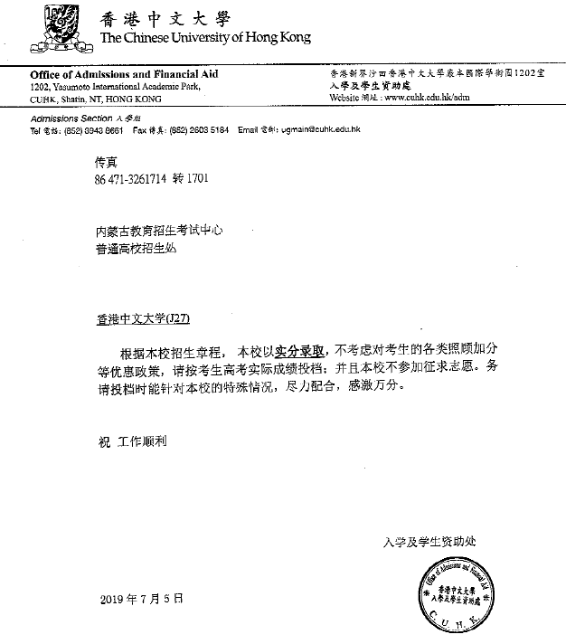 关于香港中文大学录取规则的说明