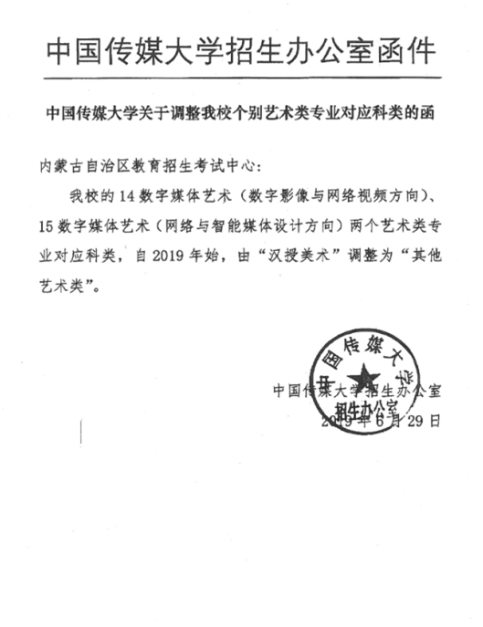 关于中国传媒大学调整艺术类专业计划的说明