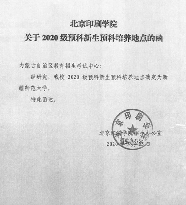 本科一批B 普通文理 (373)北京印刷学院关于2020级预科新生预科班培养地点的说明