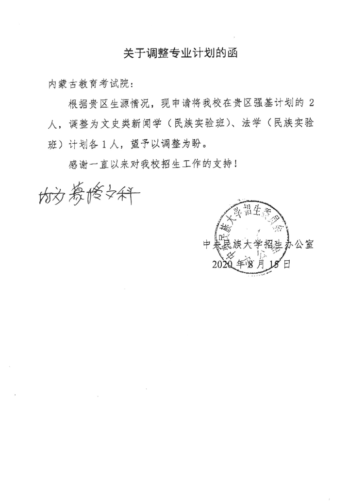 中央民族大学调整专业计划的说明