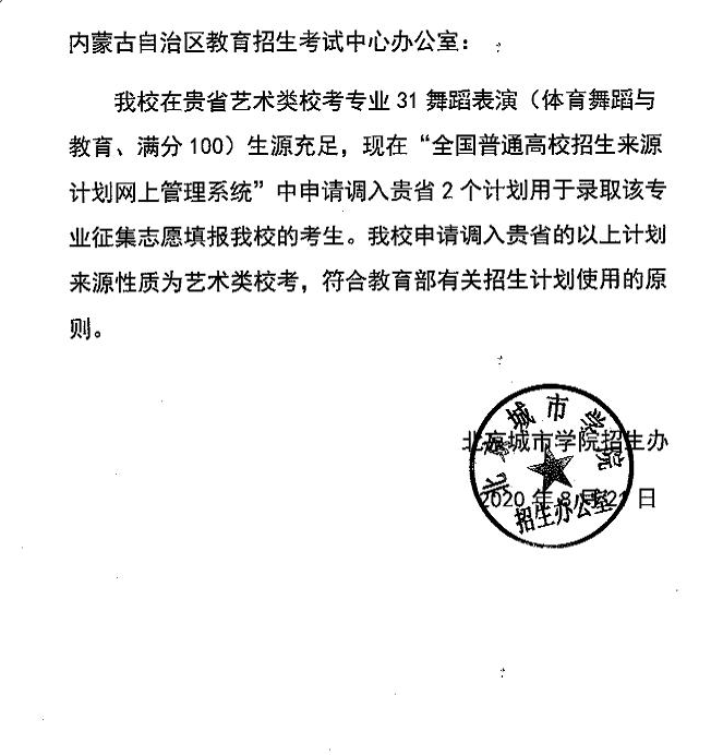 本科提前C 北京城市学院增加招生计划的说明
