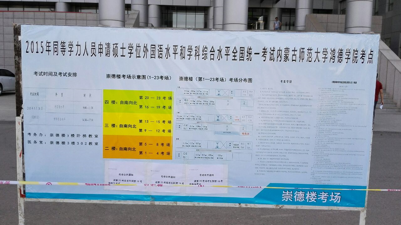 本网讯 2015年同等学力人员申请硕士学位外国语水平和学科综合水平全国统一考试31日开考,考试时间为上午9:00-11:30,下午14:30-17:30,今年我区同等学力统考报考共计953科次,在呼和浩特市设考区1个,在内蒙古师范大学鸿德学院设考点1个,共有考场20个。上午外国语考试安排597人,其中缺考137人,下午学科综合考试安排356人, 其中缺考105人,考生缺考比例较高。