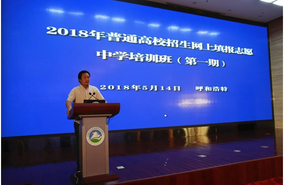 相聚初夏日,豪情著华章。5月14日,内蒙古自治区教育招生考试中心二楼多功能厅,座无虚席。共有150多名高中指导教师参加的2018年内蒙古自治区普通高考网上填报志愿培训班(第一期)如期开班了。